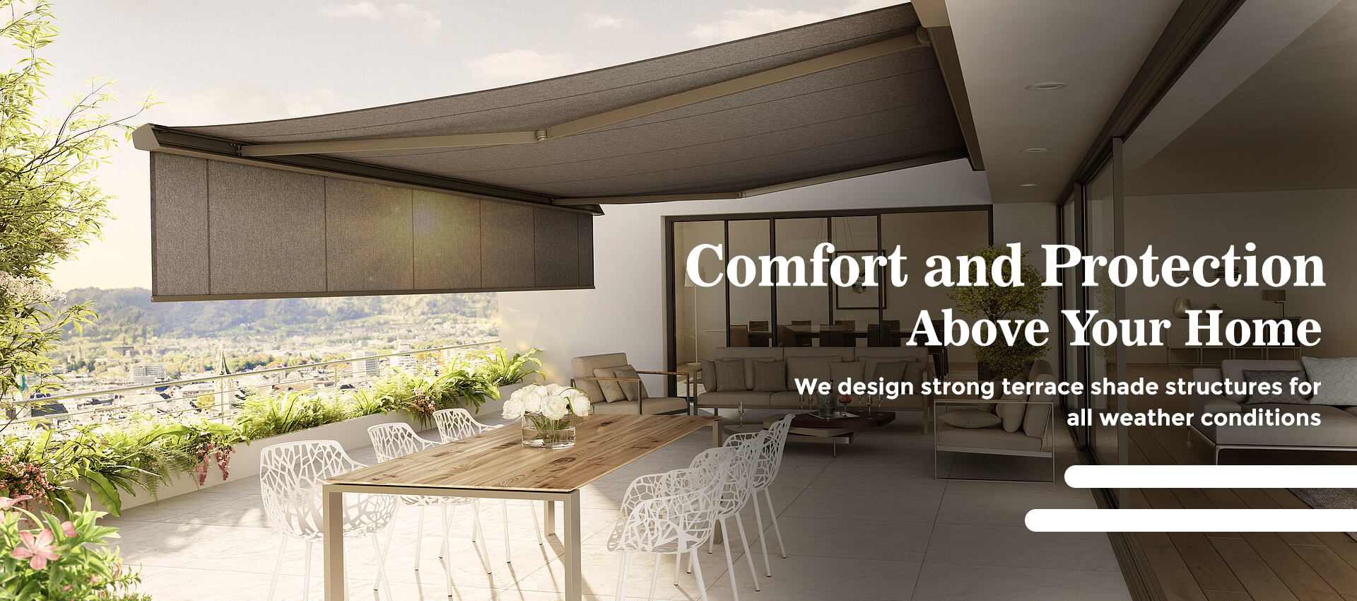 Our awnings and pergolas provide excellent protection from sun, rain, heat, and UV rays, enhancing outdoor comfort year-round.